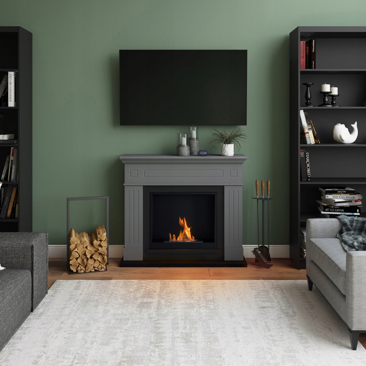 Łatwy w montażu i całkowicie czysty, LARSEN szary FreeFlame tworzy wyjątkową atmosferę spokoju, przytulności i nowoczesnego luksusu.