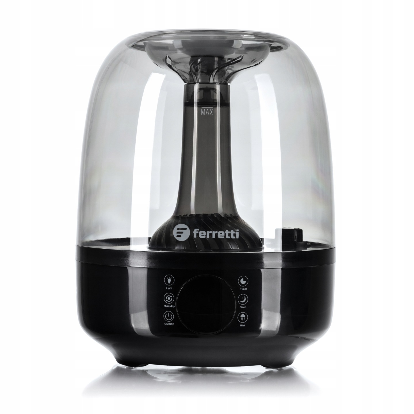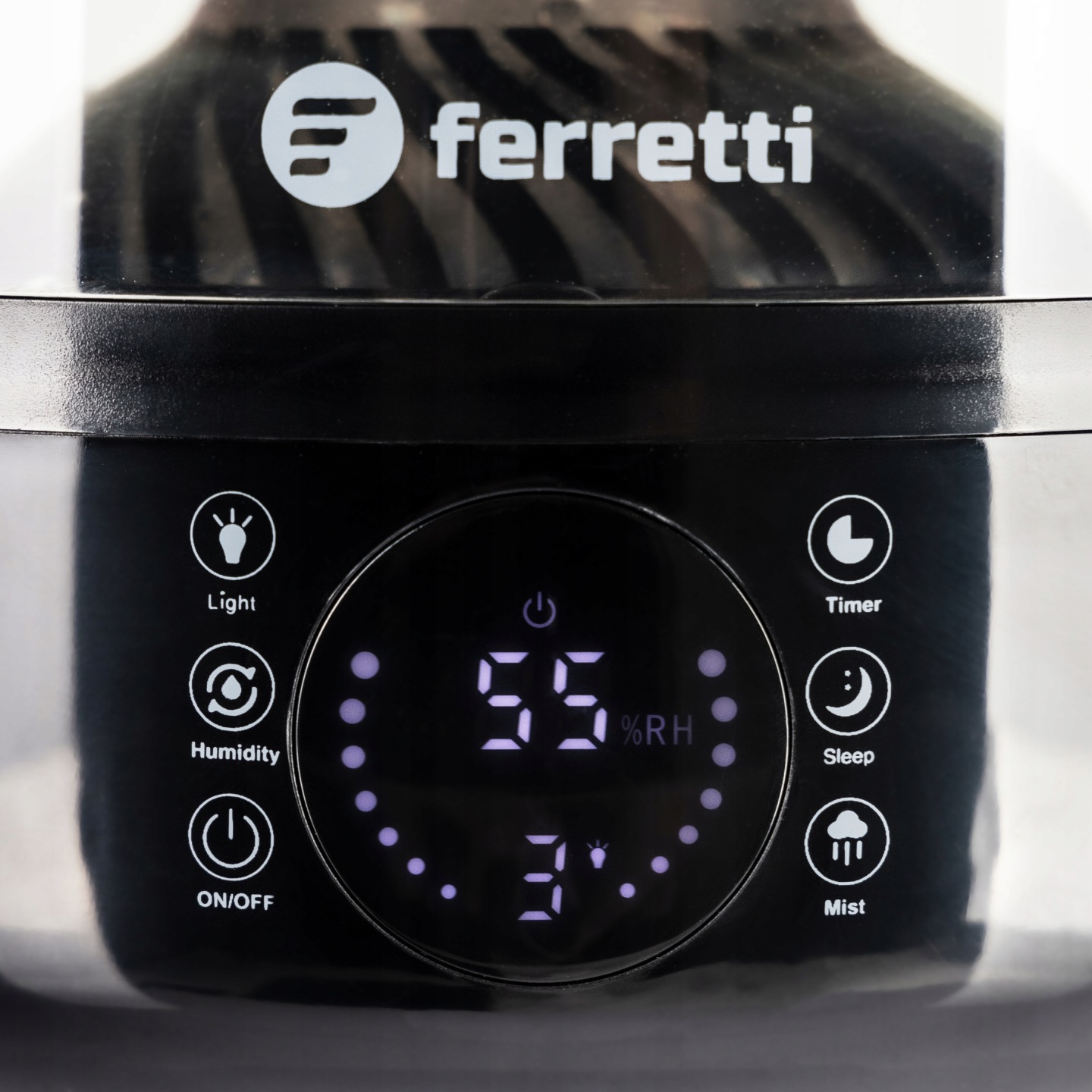 Nowoczesny nawilżacz powietrza z wyświetlaczem LCD i aromaterapią.